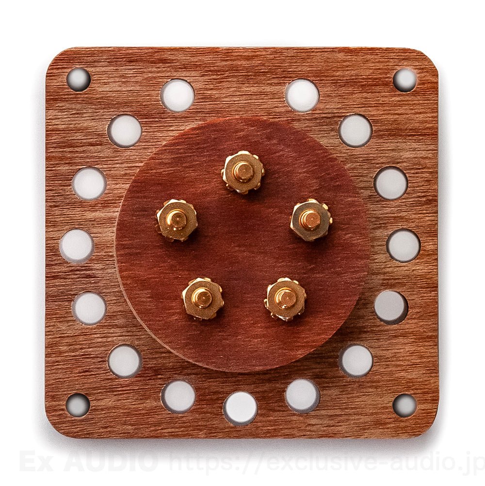 Der Steckdosenkörper hatCompriteDer Körper ist geschnitzt und geformt.Compriteist ein hochfestes Material, das aus Holz als Grundmaterial besteht und mit Phenolharz imprägniert ist. Es verfügt über mit Bakelit vergleichbare elektrische Eigenschaften, weist jedoch eine überlegene Festigkeit und Hitzebeständigkeit auf. Ein weiteres Merkmal ist, dass seine solide Steifigkeit unnötige Resonanzen unterdrückt und einen stabilen und dichten Klang erzeugt.