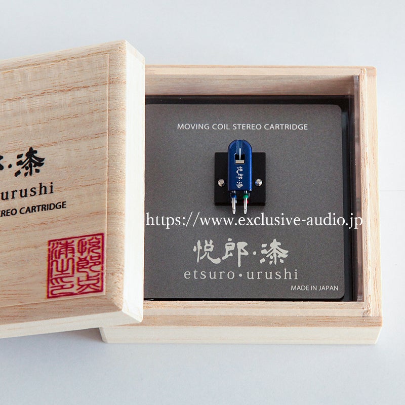 「悦郎・漆 "etsuro urushi" COBALT BLUE」は、2015年11月に発売された同ブランドのカートリッジ「悦郎・漆」の第2弾となる製品で、80μmスタイラスチップやサファイアパイプカンチレバー、超々ジュラルミン(A7075材)製ハウジングといったオリジナルモデルの特長を多く継承しています。仕上げに日本伝統工芸の漆塗り漆加工をおこなう坂本乙造商店と吟味した結果採用したというコバルトブルーのカラーリングです。