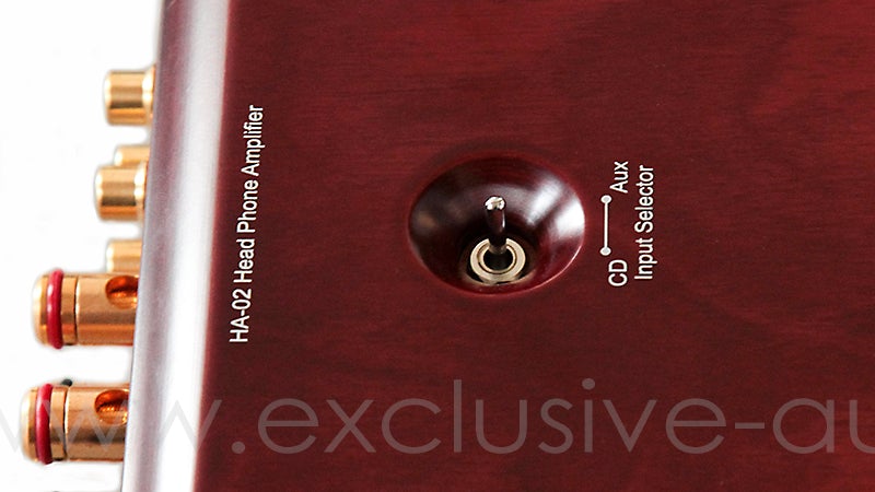 HA-02の入力部には2系統の端子を設け、CDプレーヤーやミュージックプレーヤーなどを接続できるようにし、シャシーの上面の切り替えスイッチで切り替えて使用できるようにしています。付属のケーブルを使用すればi-pod等のほとんどの携帯機器を接続できます。これらの携帯機器を接続しBGMとしてスピーカーを鳴らしながら仕事や勉強をするのにもHA-02はお奨めです。HA-02をヘッドフォン用として使用した場合は最適負荷インピーダンスは50Ωですが、8Ωから600Ωくらいまでの広範囲なインピーダンスのヘッドフォンに対応可能です。