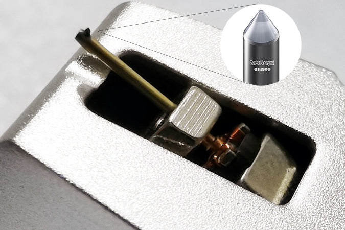 0.024mmの高純度OFC(無酸素銅)コイルとアルミニウム製カンチレバー、コニカルボンド・ダイヤモンド針を採用したことにより、伝送ロスの少ないクリアな音質と、スムーズなトラッキング性能、そして自然で耳あたりの良い音の質感が得られます。過度な刺激感のない、落ち着いたリスニング体験を提供します。出力レベルは0.36mV(@1kHz, 5cm/s)、内部インピーダンスは7Ω(DC)と扱いやすく、チャンネルセパレーションは25dB以上、チャンネルバランスは0.5dB未満と高い精度を誇ります。周波数特性は20Hz〜20kHz ±1dBと非常にフラットで、明瞭かつ自然な再生音に貢献しています。聴くほどに馴染み、音楽への没入感を深めてくれるカートリッジです。