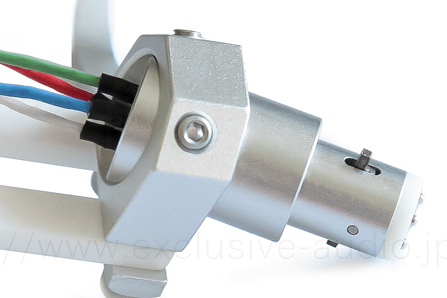 大多数の既存のヘッドシェルはトーンアームに取り付ける時に接続部にある上の1ピンだけを引き込む構造ですが、それだと下側に隙間が生じてしまいゴムリングでその隙間を埋めると弾性合体になり鈍い音になってしまいます。接続口には必ず隙間ができ、たったの1ミクロンの隙間であっても音響的には影響を受けます。